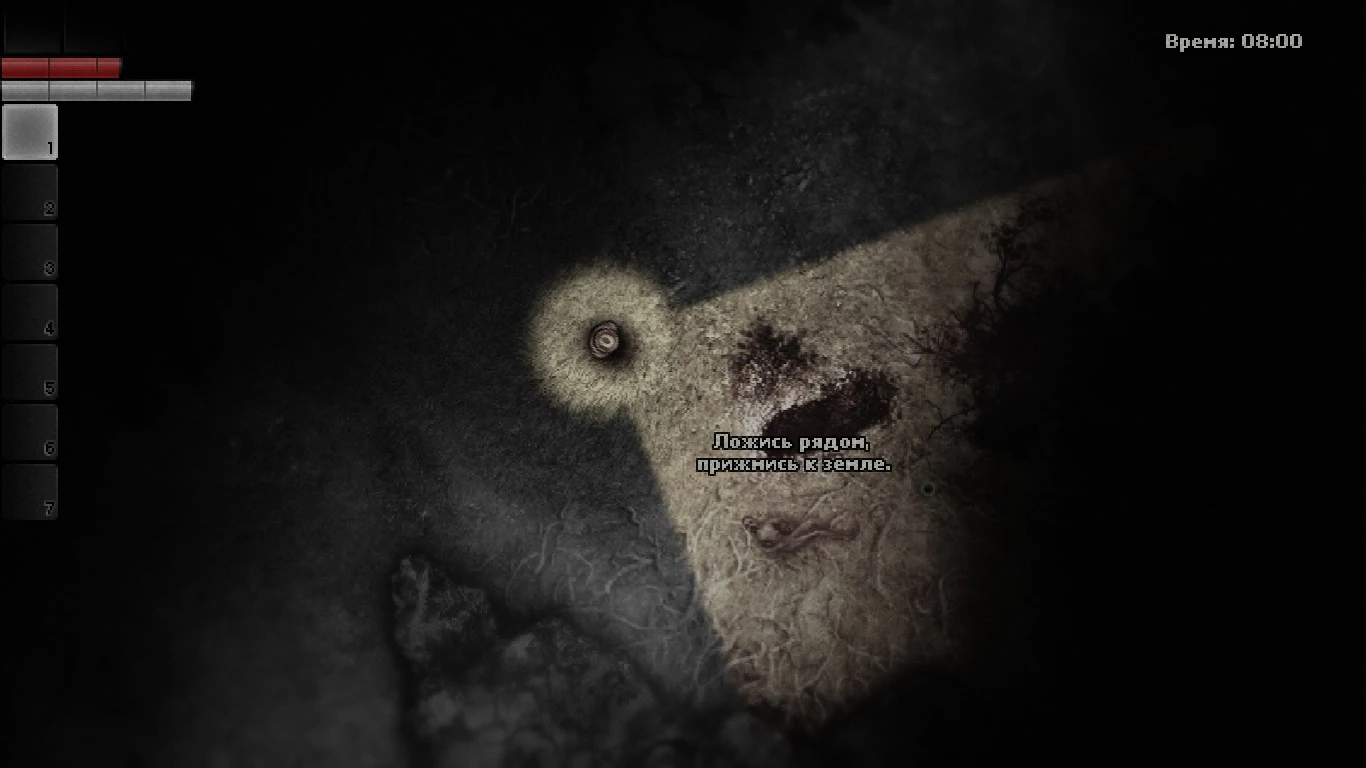 Вы появляется в лесу. После небольшой прогулки на поляне вы находите могилу. Около нее лежит мертвец, который предложит вам лечь с ним в могилу. Около могилы находится лопата.