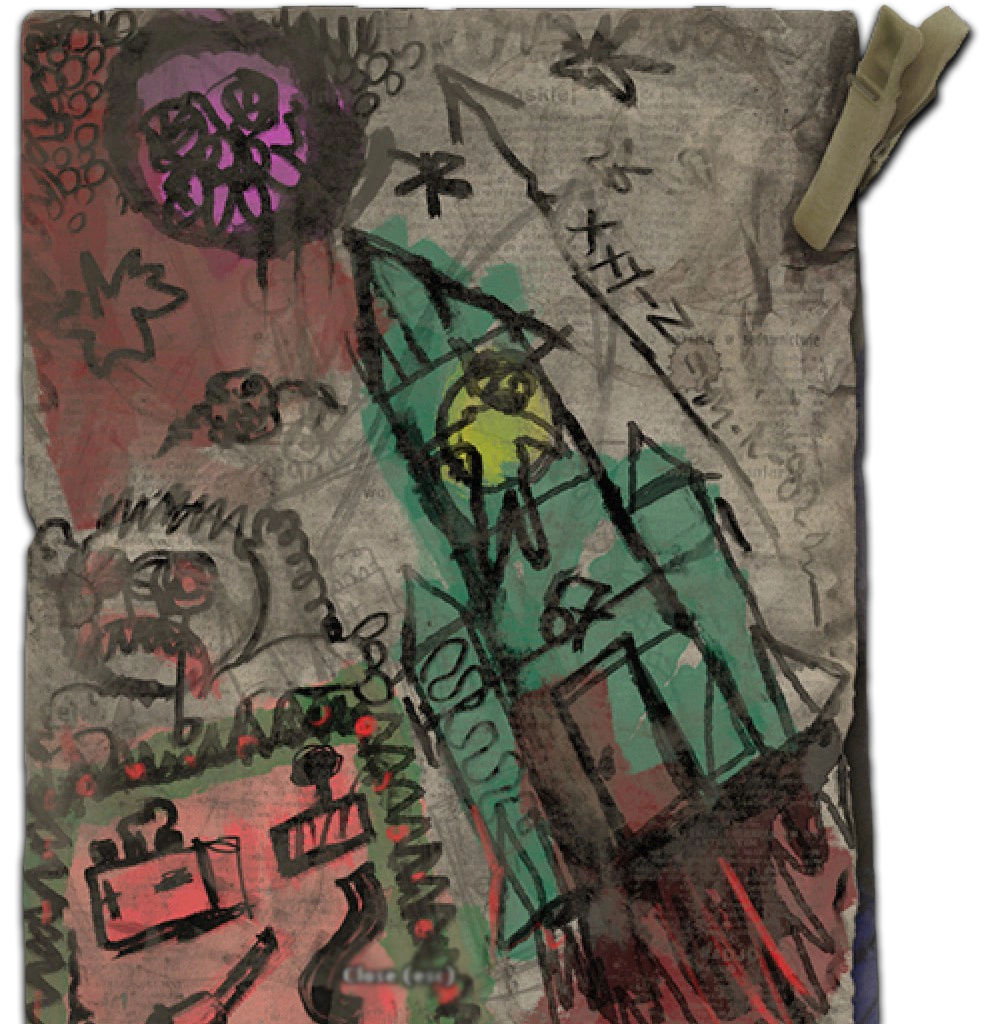 | Армейский жетон • Ведро • Газета Tribuna • Записка от волка • Заметки доктора • Игрушечная ракета • Отрывок из библии • Окровавленная шляпа • План • Камера • Карта Старого леса • Карта Леса • Карта свалки • Книга • Книга о грибах • Медальон • Медицинская книга • Медицинская сумка • Оборванное фото • Пачка сигарет • Скальпель • Табак • Трофей • Белое платье • Фотография Гагарина • Фото доктора • Фото • Флаер • Обручальное кольцо • Обручальное кольцо (подделка) • Фотография дороги |