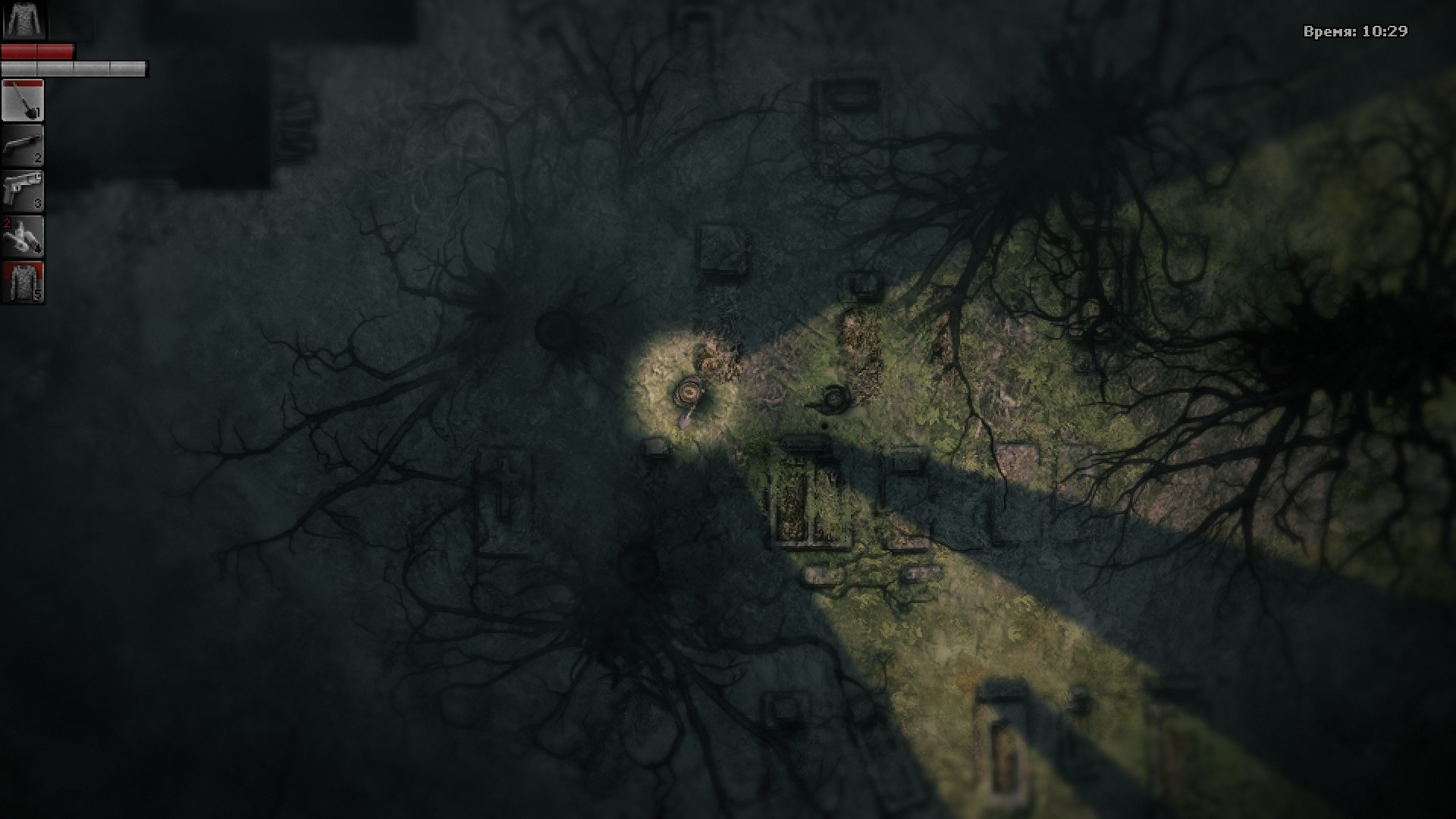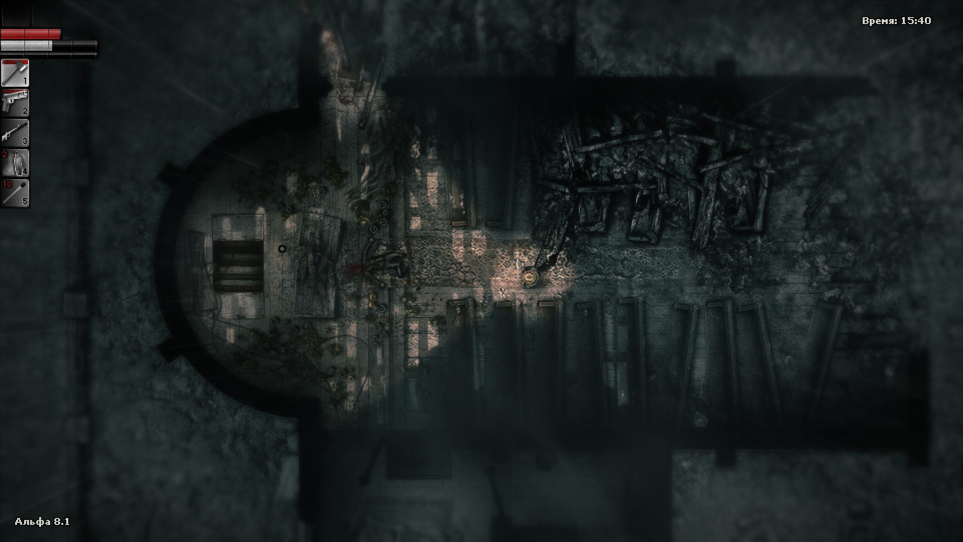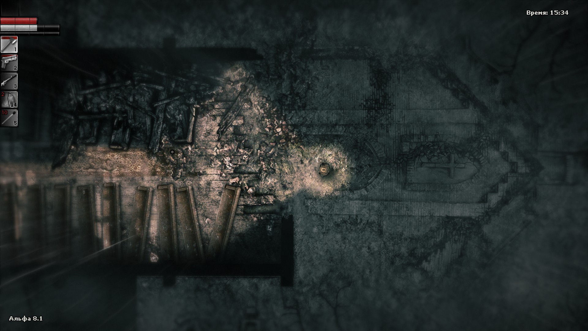 В бункере нужно соблюдать особую осторожность. Внизу царит тьма, кругом лежит бесчисленное число трупов (не осматривайте их содержимое, иначе вы будете отравлены). Всё это - селяне, пытающиеся спастись под церковью от наступающей эпидемии, загнав себя в ловушку и встретив ужасную смерть взаперти. Внизу можно найти радио, если его включить, то на звук сбежится орда красных чомперов.