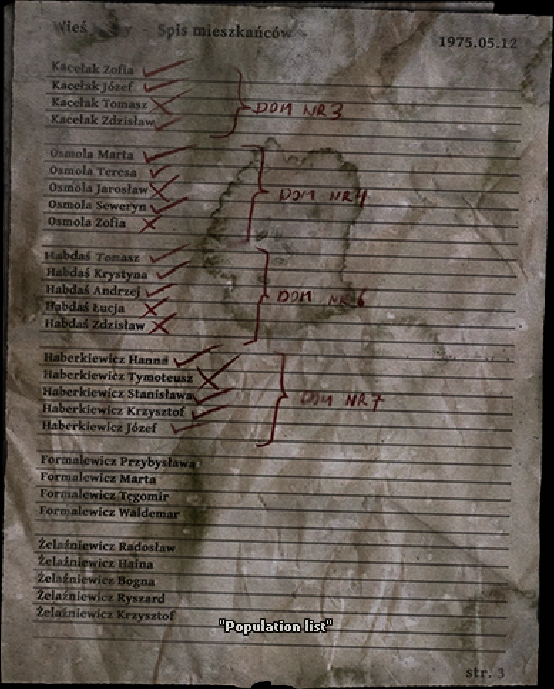 Неполный список жителей Темнолесья. Непонятно что обозначают кресты и галочки.